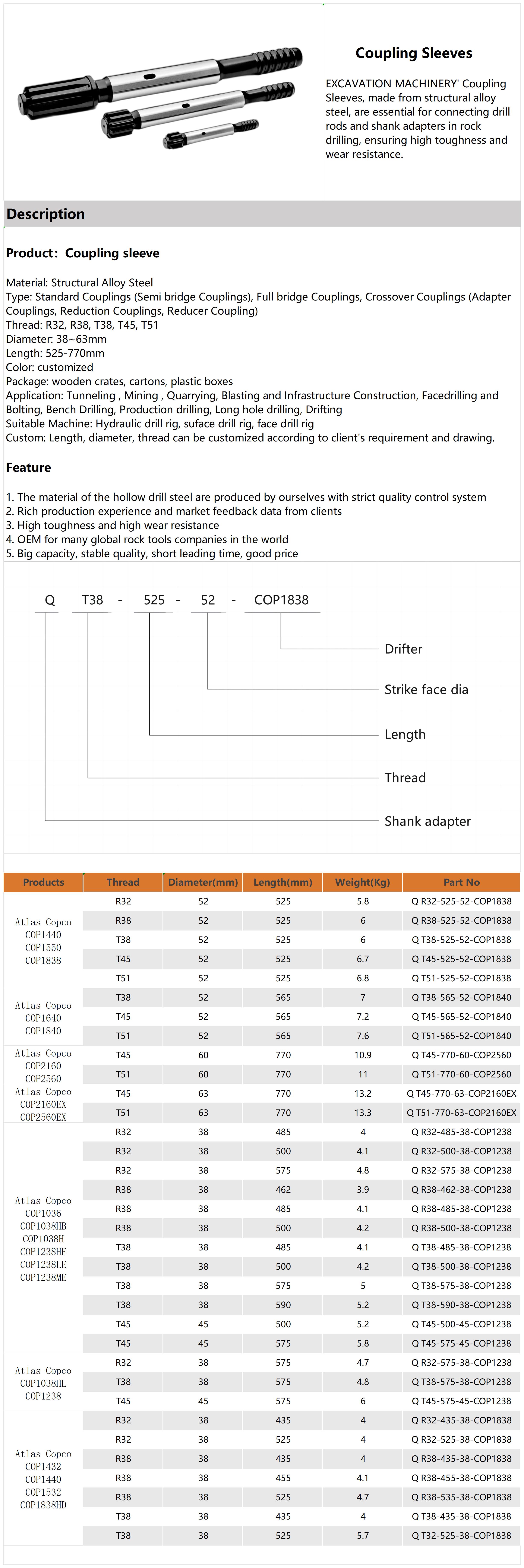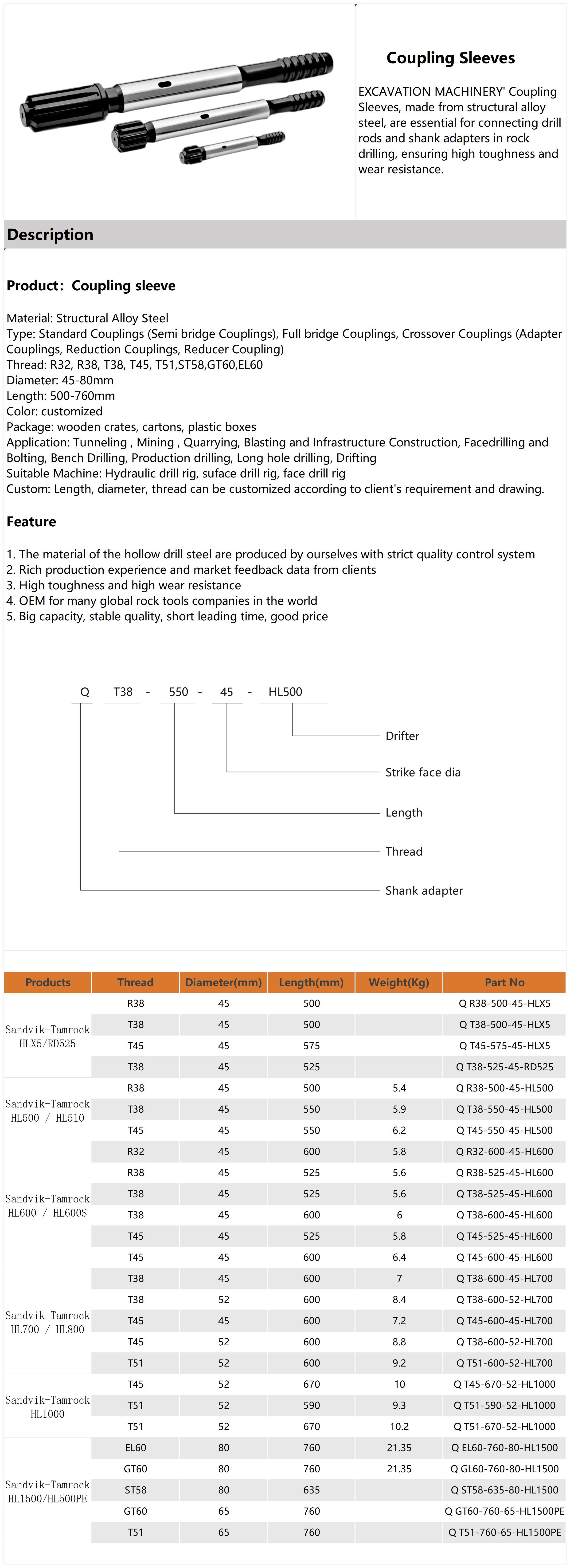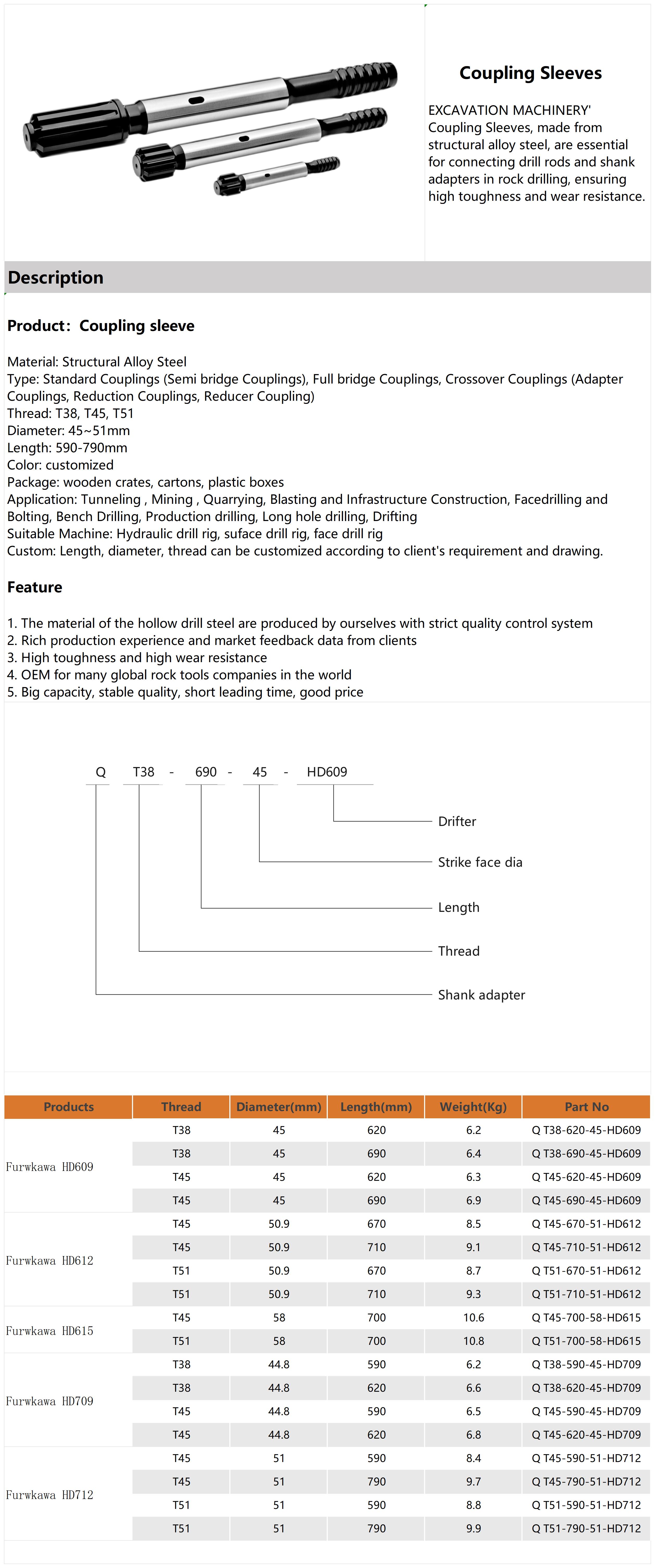 Suitable Machine: Hydraulic drill rig, suface drill rig, face drill rig