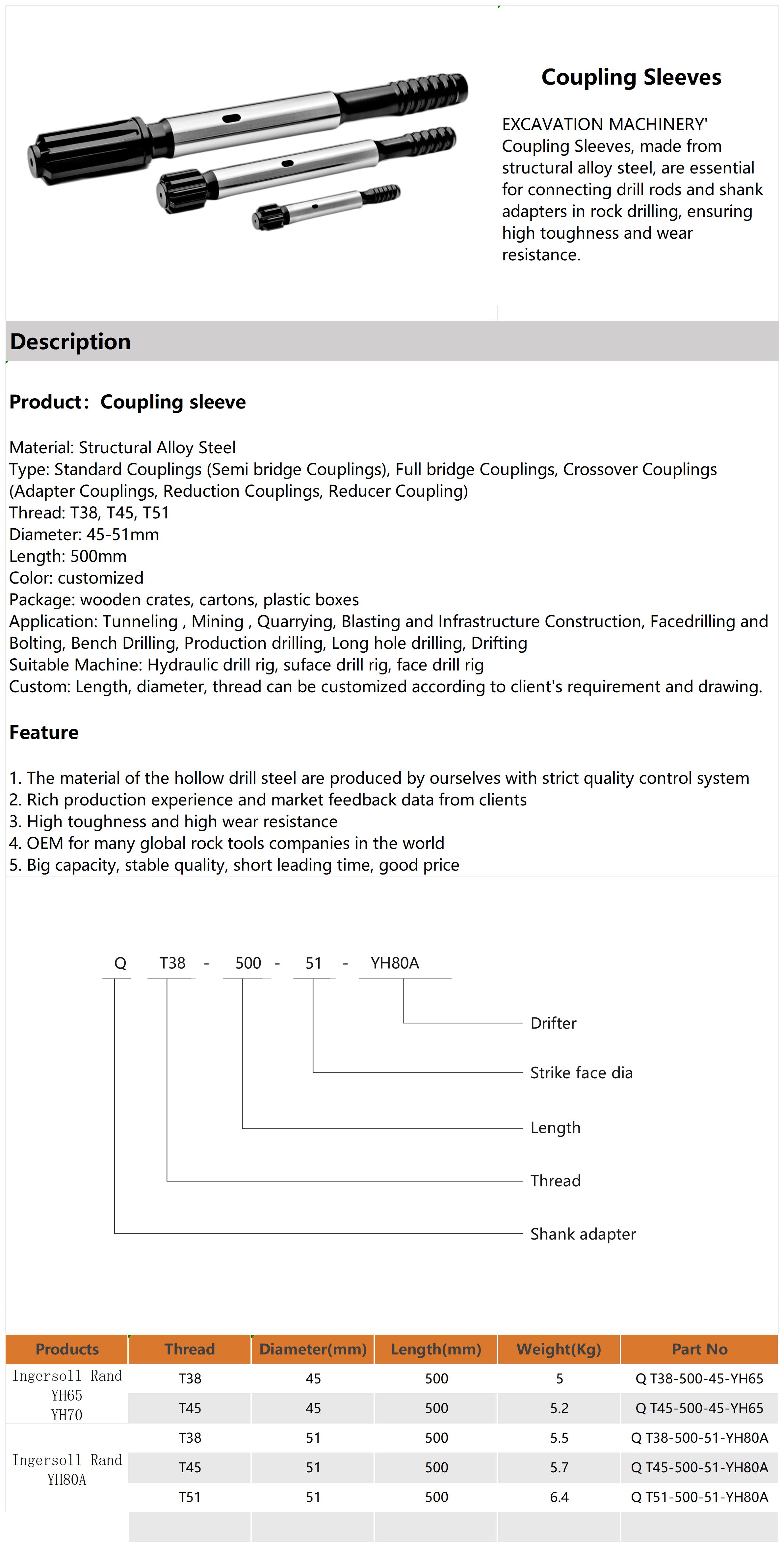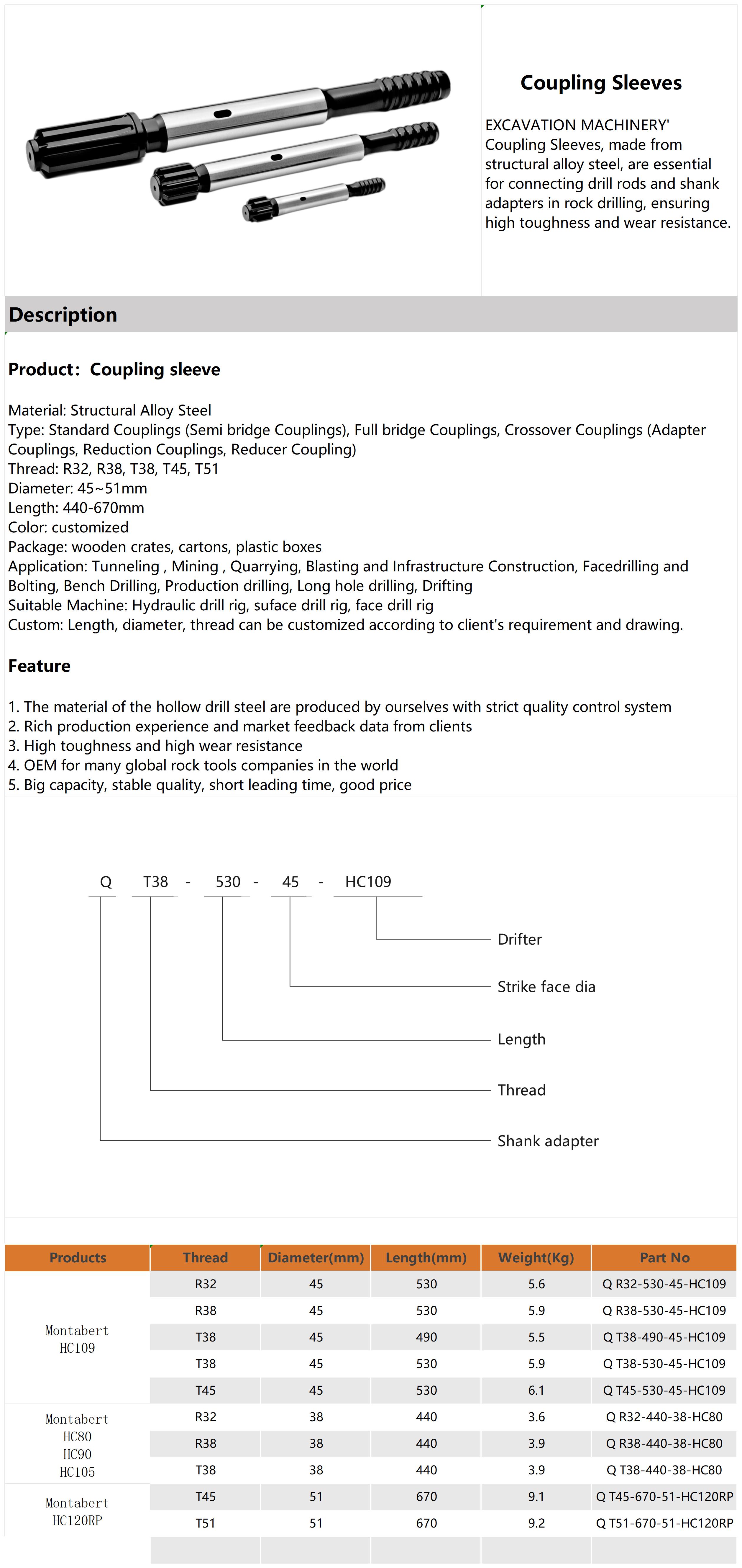 1. The material of the hollow drill steel are produced by ourselves with strict quality control system